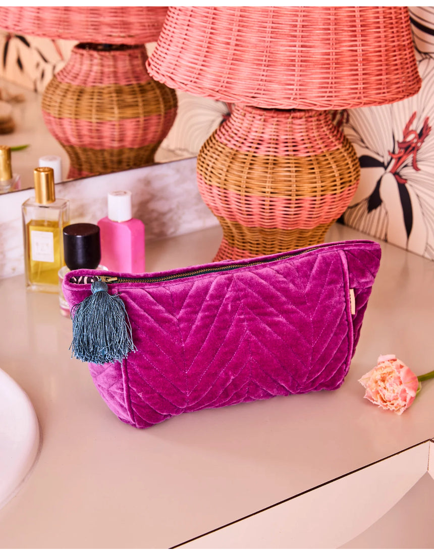 Regular price $55.00Turn your everyday routines into something a little more fabulous. Our Wild Grape Velvet Toiletry Bag offers plenty of room for your daily essentials, wrapped up in rich velvet with a playful tassel finish. See, practical can totally be sure too.