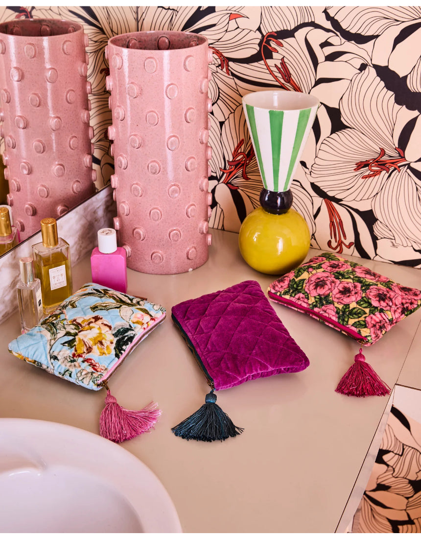 Regular price $39.00Pretty enough to leave on the bathroom bench and practical enough to actually use every day. Our Golden Peony Velvet Cosmetics Purse is soft, quilted and perfectly sized for your daily essentials, wrapped up in rich velvet with a playful tassel finish. It’s your beauty bits, but more joyful.