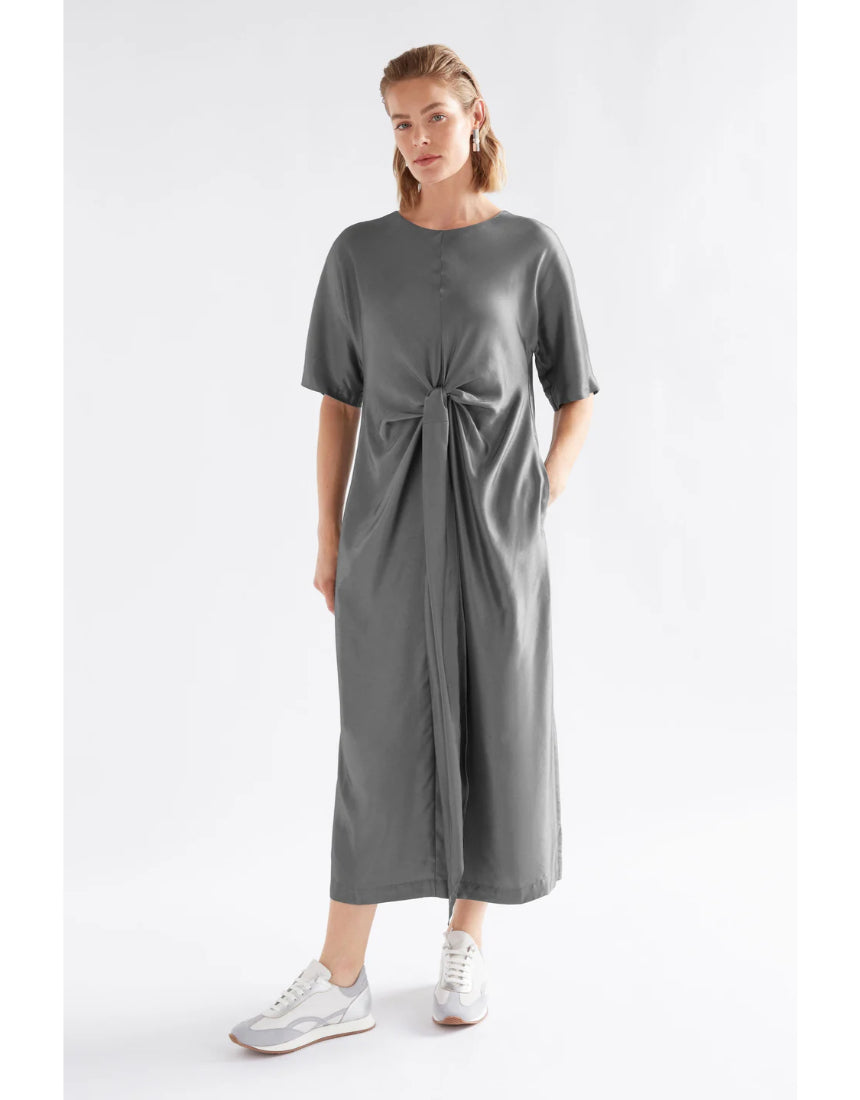 The Lissu Dress is a sophisticated midi dress designed to turn heads. Featuring a twist front waist tie, a round neckline and dropped shoulders. It’s crafted from a softLENZING™ ECOVERO™viscose blend with a metallic sheen finish and gentle drape. This dress is finished with short sleeves, side seam splits and an invisible centre back zip. Style with statement jewels and strappy sandals for special occasions.