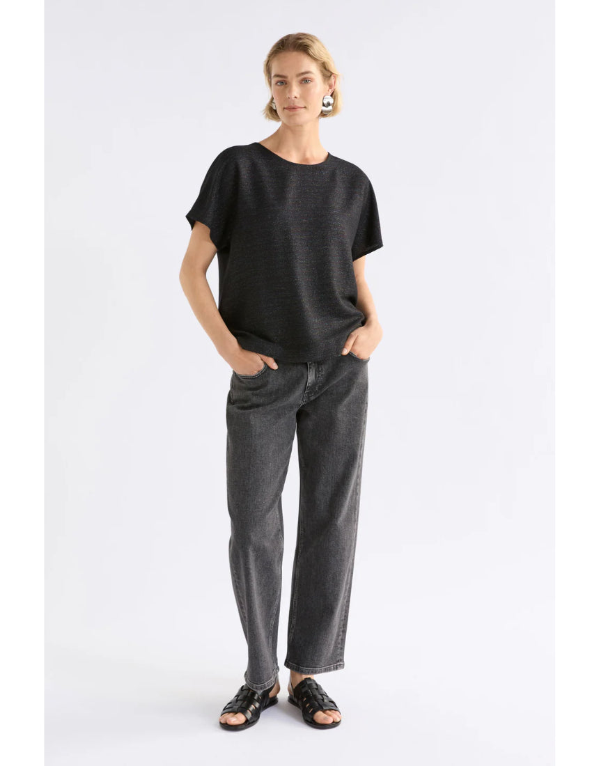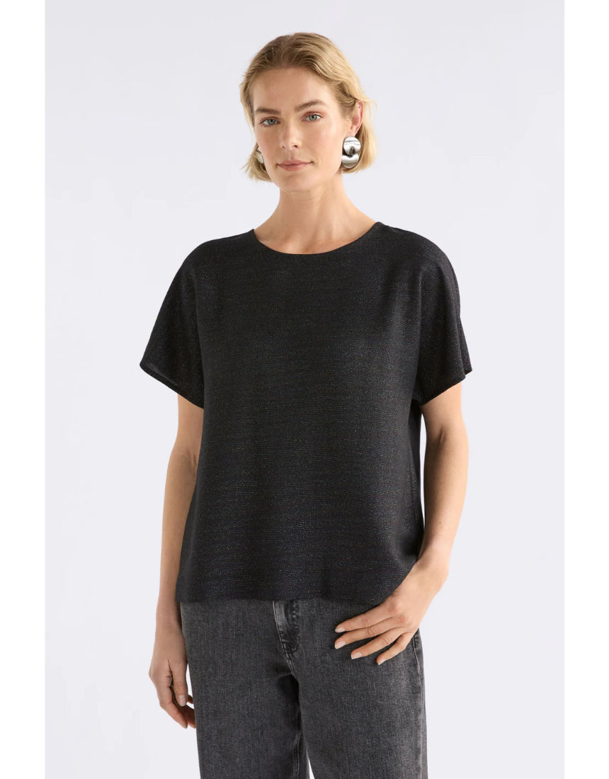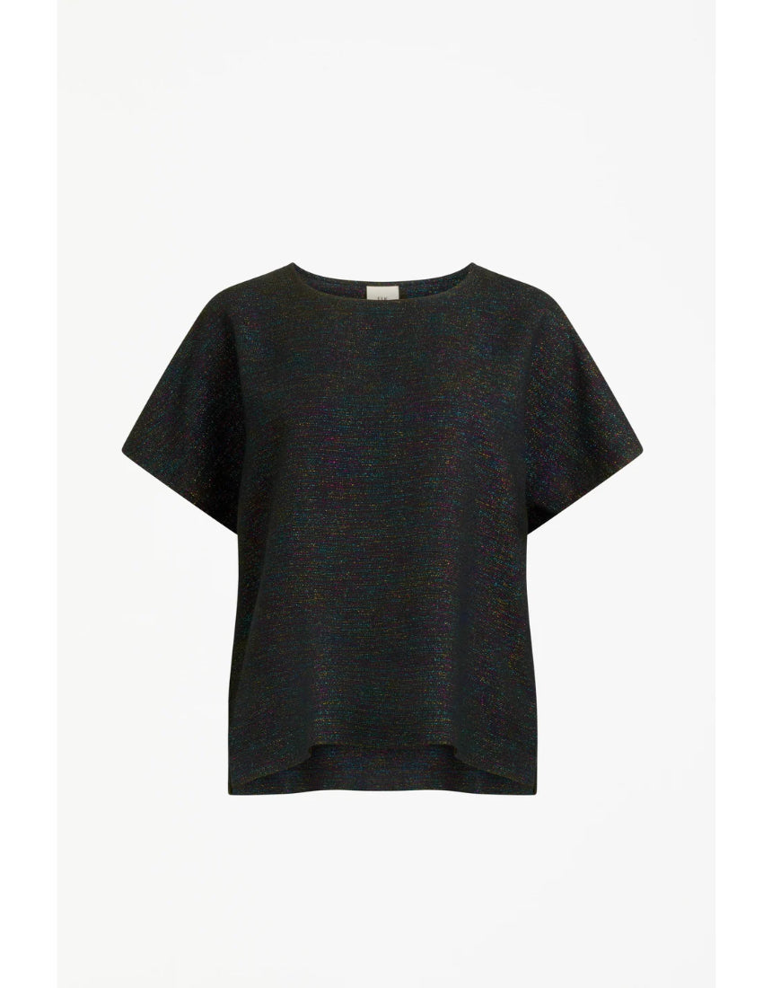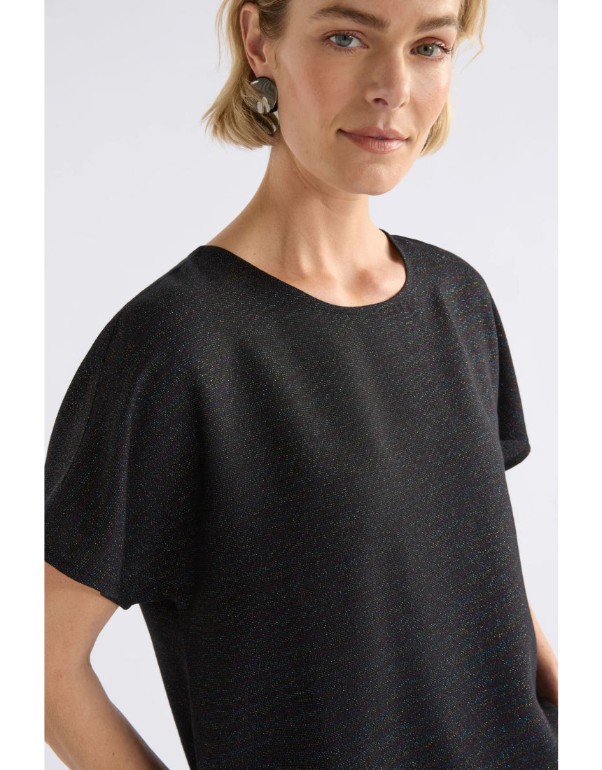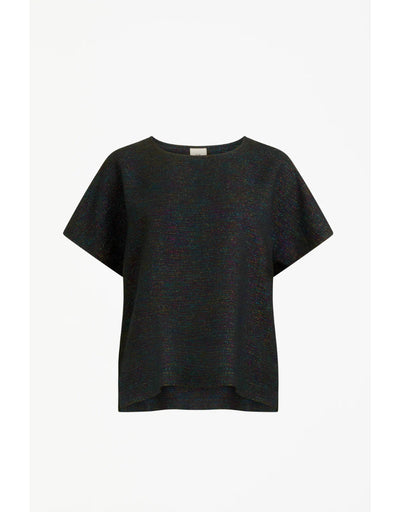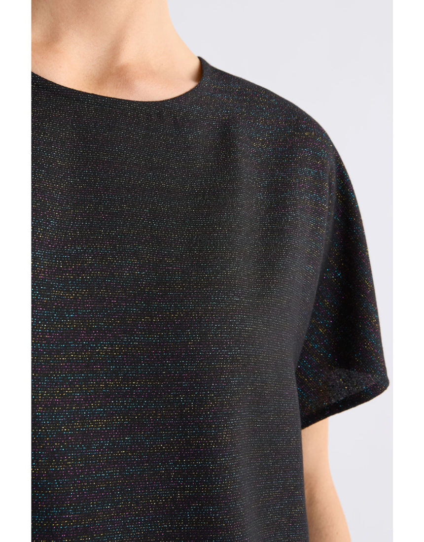 Add some subtle sparkle to your outfits with the Tulle Top. This top is crafted from a lightweightLENZING™ ECOVERO™ viscoseblend woven with a Lurex thread throughout, creating a multi-coloured metallic shine. This regular fit, crew neck top features bat winged sleeves and small side splits. Style with the coordinating Tulle Pant for a statement glistening look or with dark denim for more casual outfitting.