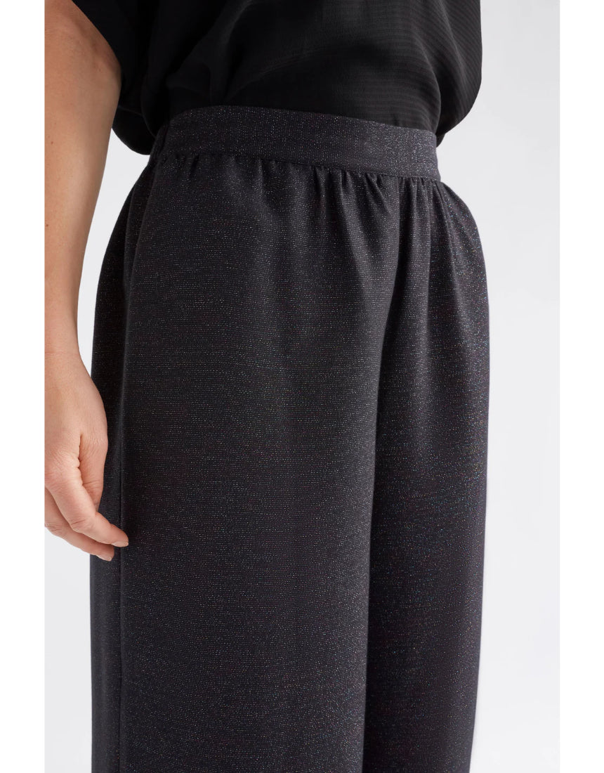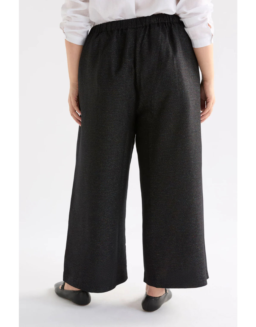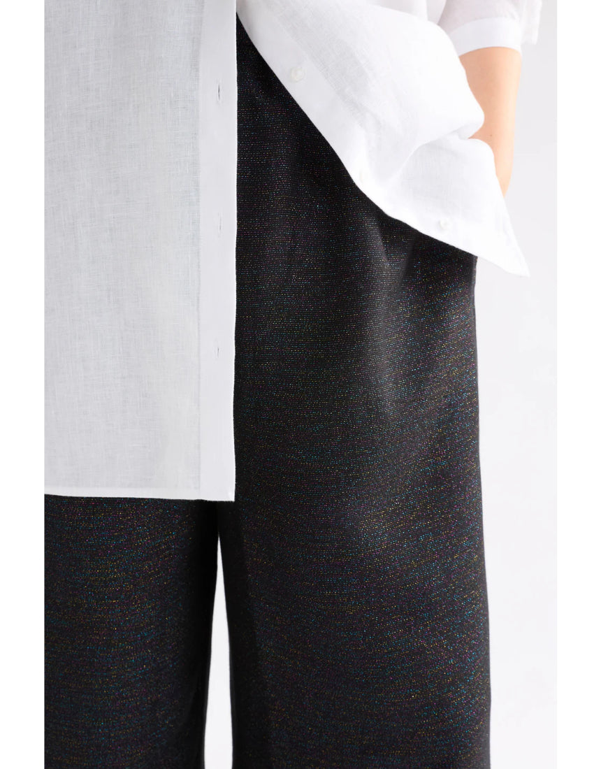 Add some subtle evening sparkle to your outfits with the Tulle Pant. These full-length, wide leg pants are crafted from a lightweight LENZING™ ECOVERO™ viscoseblend with a metallic Lurex thread throughout, creating multi-coloured metallic shine and soft fluid drape. Finished with an internal drawstring tie with elasticated back and soft gathers providing an adjustable fit. Style with the coordinating Tulle Top for a glamourous coordinated look or with more simple tops for day-to-day outfitting.