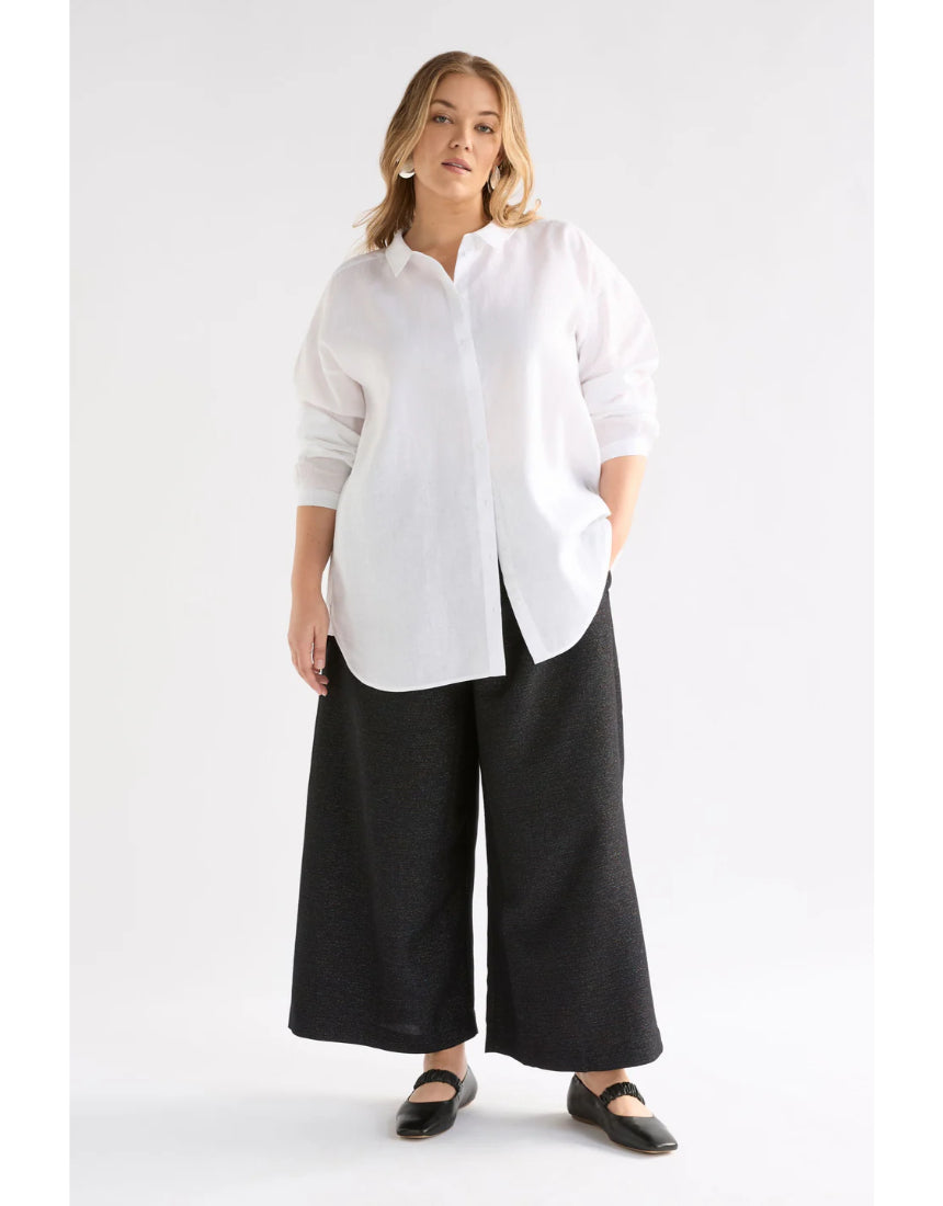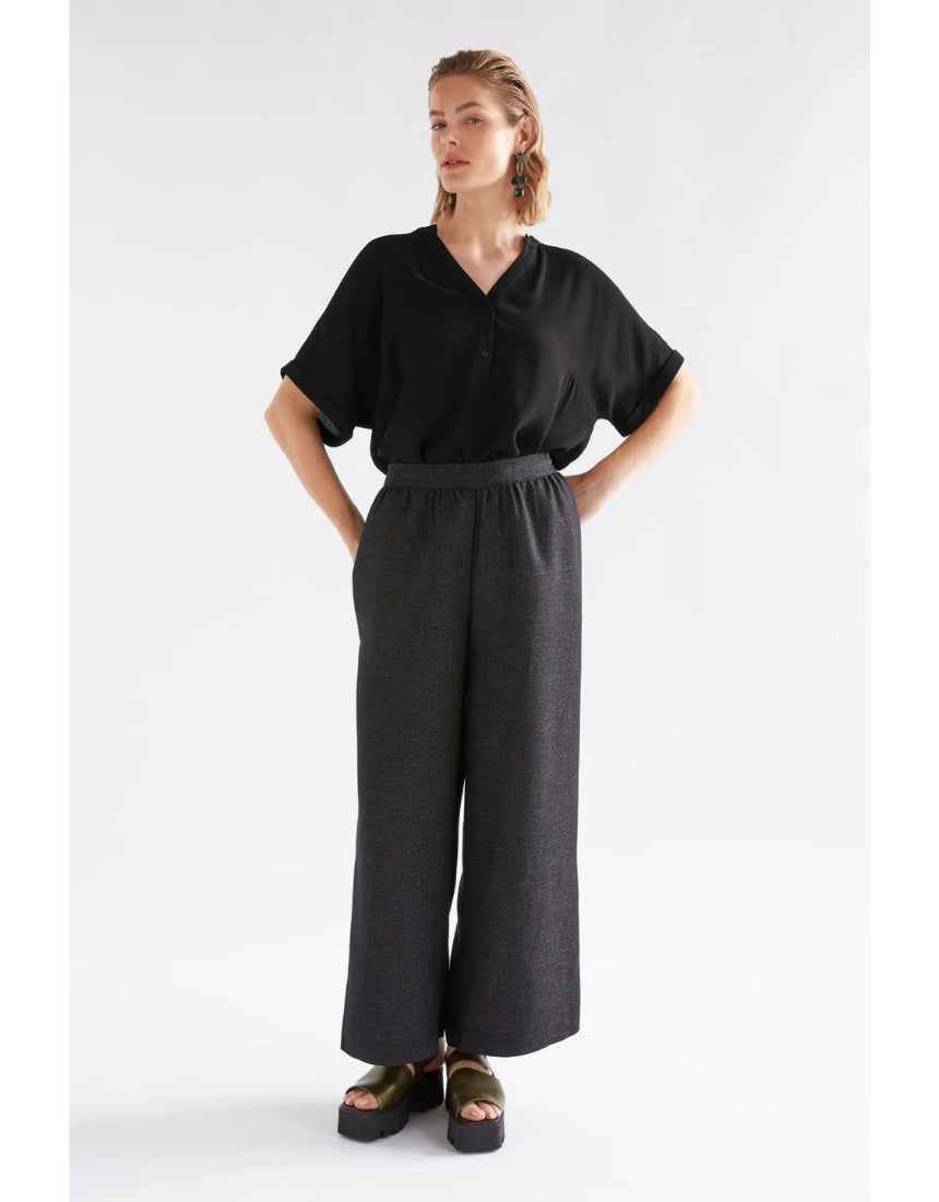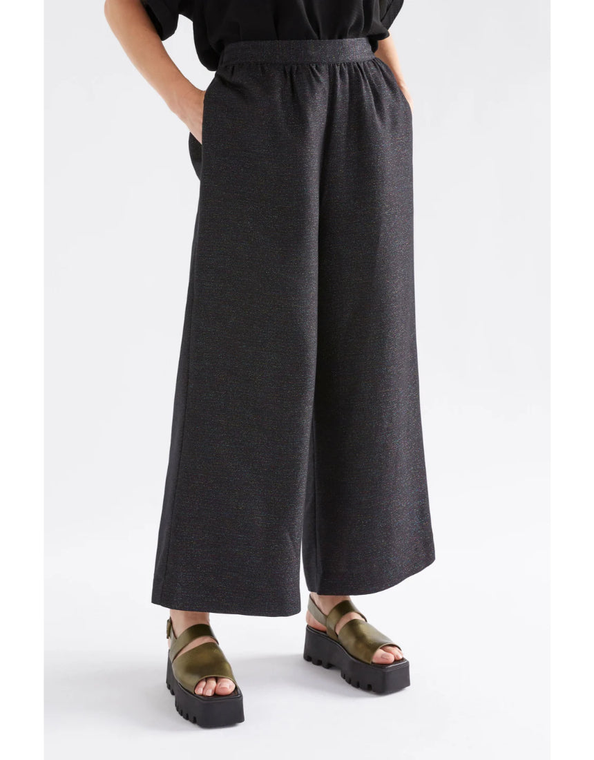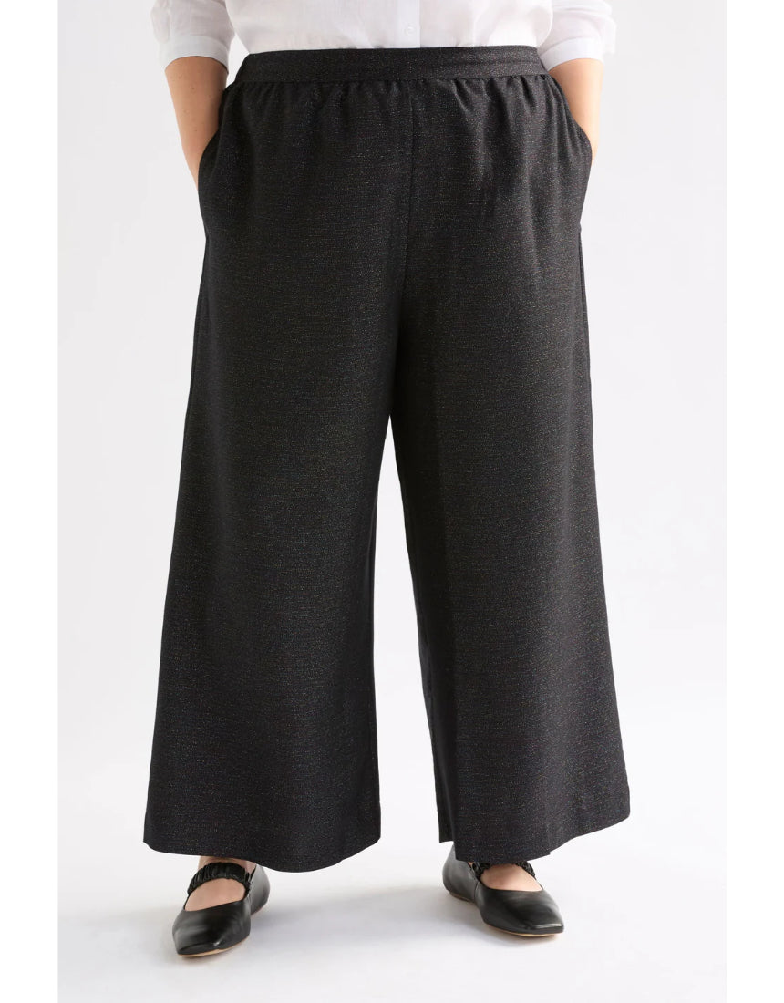 Add some subtle evening sparkle to your outfits with the Tulle Pant. These full-length, wide leg pants are crafted from a lightweight LENZING™ ECOVERO™ viscoseblend with a metallic Lurex thread throughout, creating multi-coloured metallic shine and soft fluid drape. Finished with an internal drawstring tie with elasticated back and soft gathers providing an adjustable fit. Style with the coordinating Tulle Top for a glamourous coordinated look or with more simple tops for day-to-day outfitting.