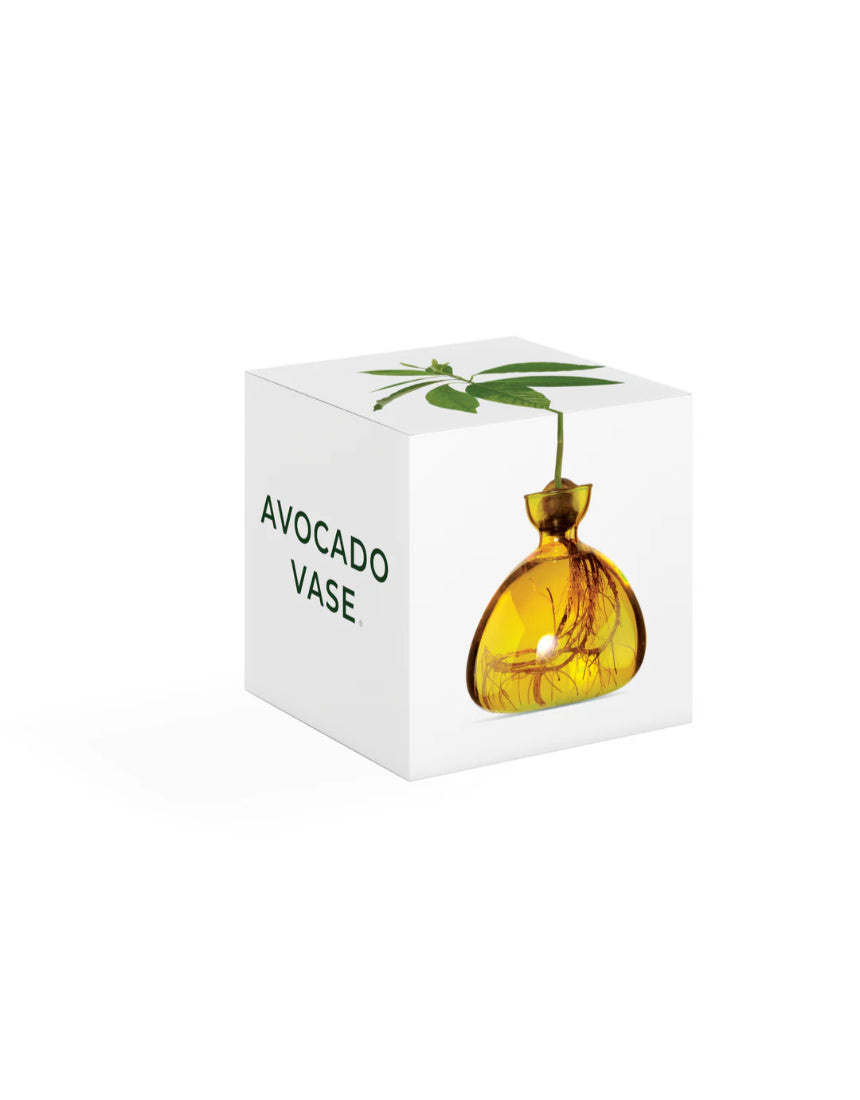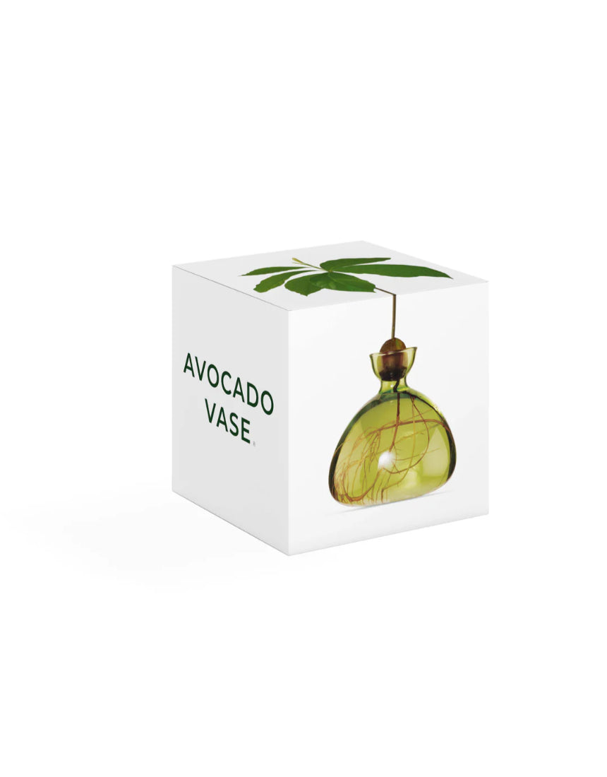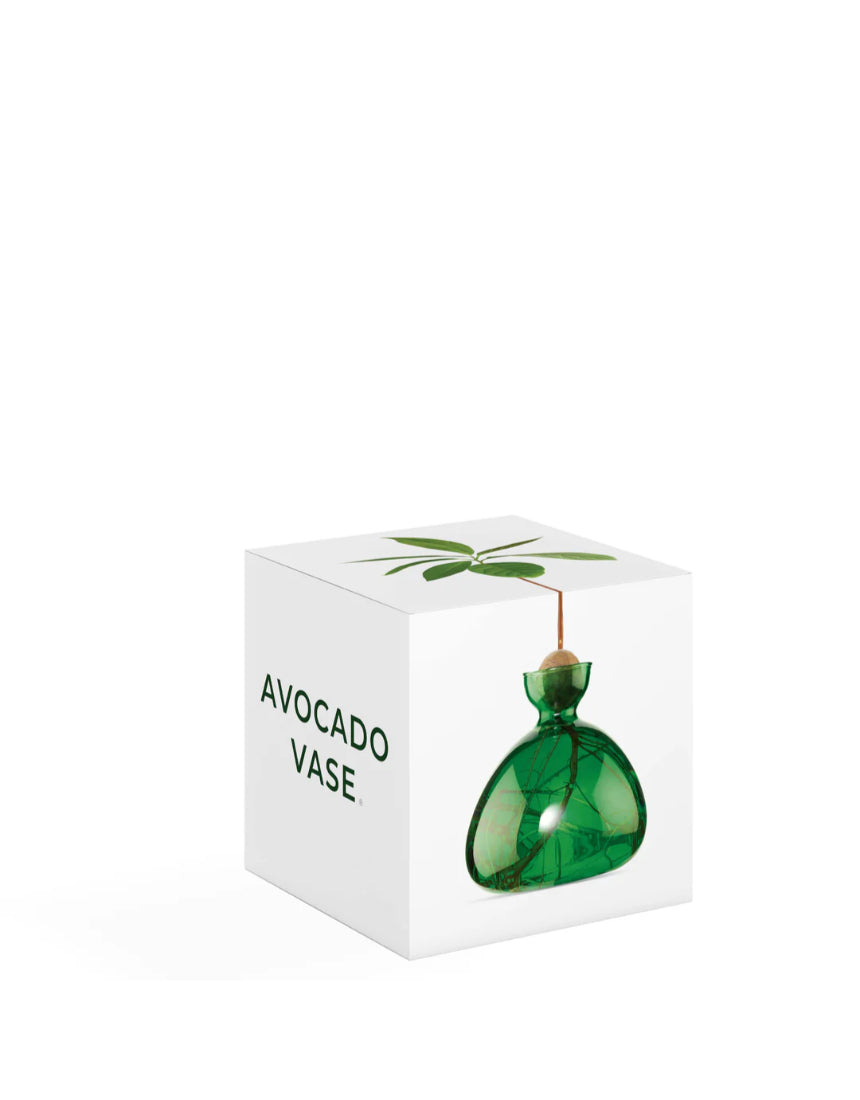 The Avocado Vase (15cm x 15cm) is made from borosilicate glass. The vase includes a 36-page handbook, which thoughtfully guides the user with detailed steps for germinating the seed and growing the avocado plant. The handbook contains useful tips and advice on the subjects of water, light, pruning and repotting. As well as historical references and artistic inspirations. The packaging is printed on recycled card.