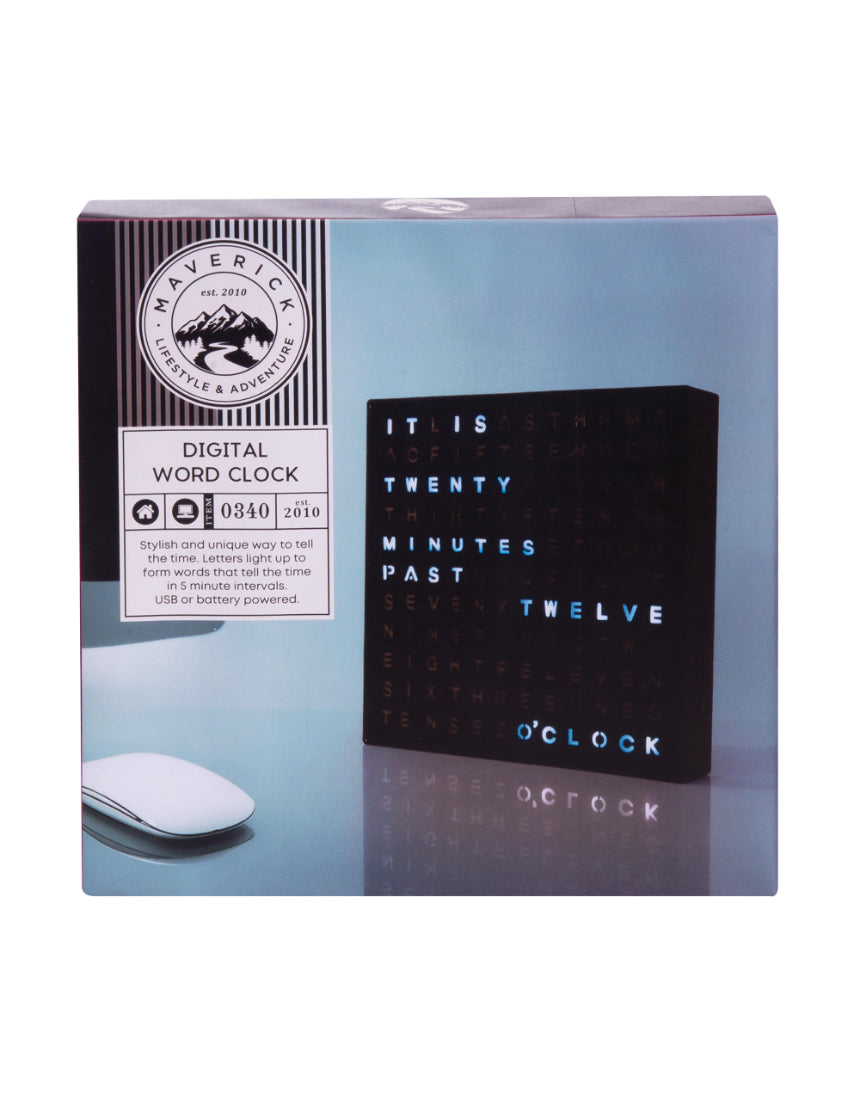 Regular price $45.00USB or battery operated digital clock, which displays the time in words rather than numbers.