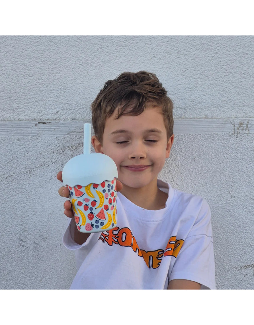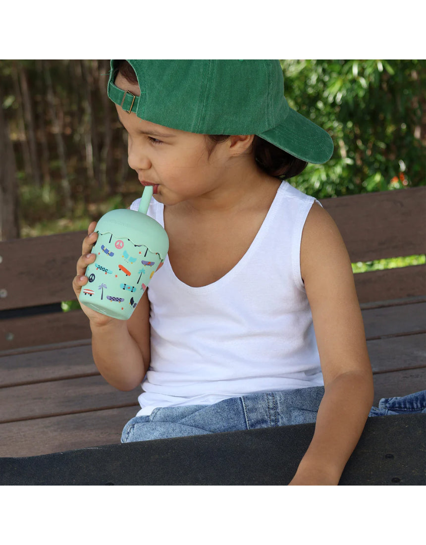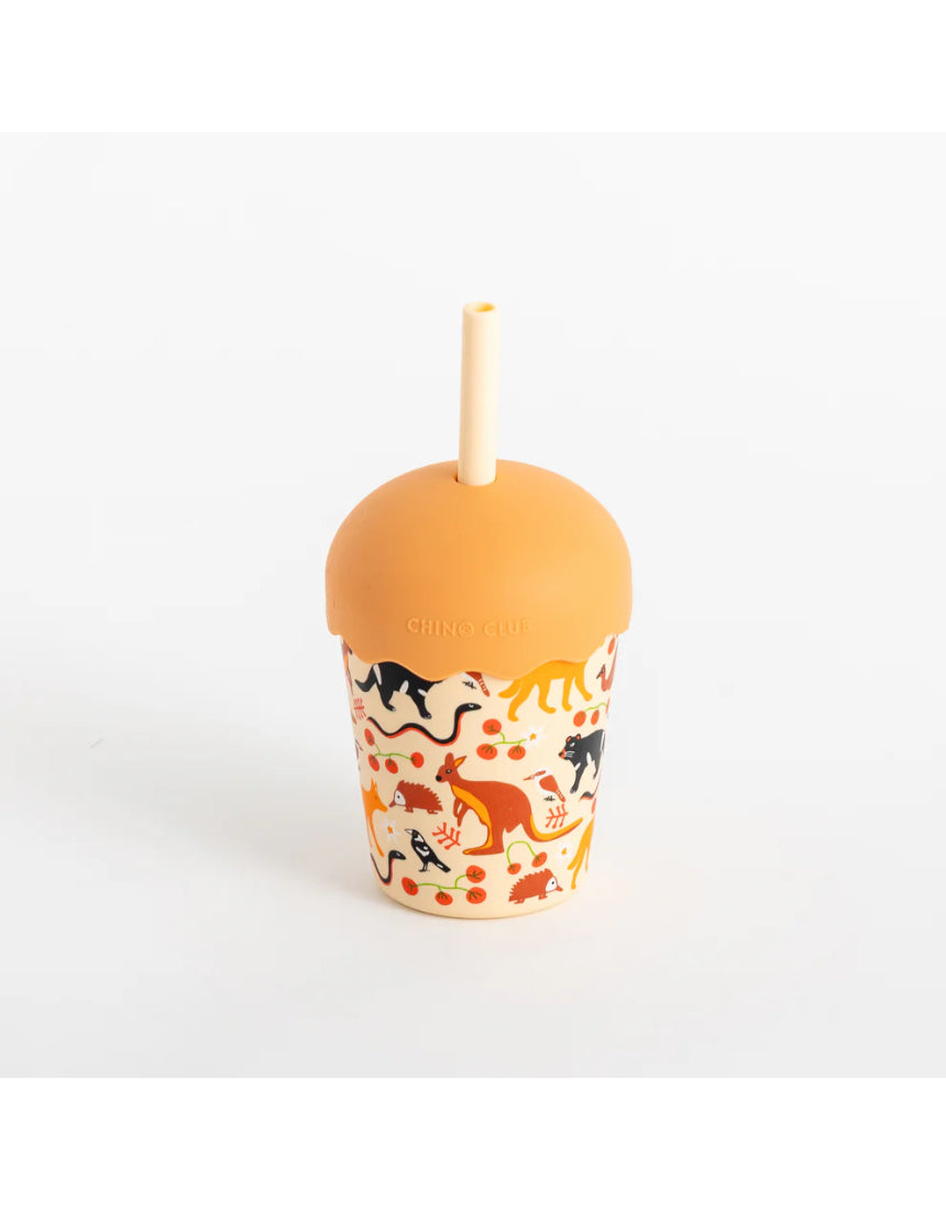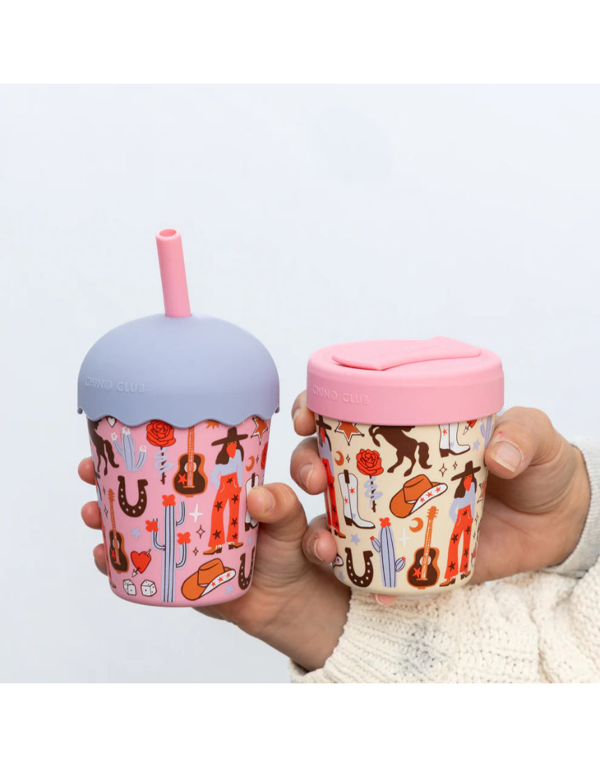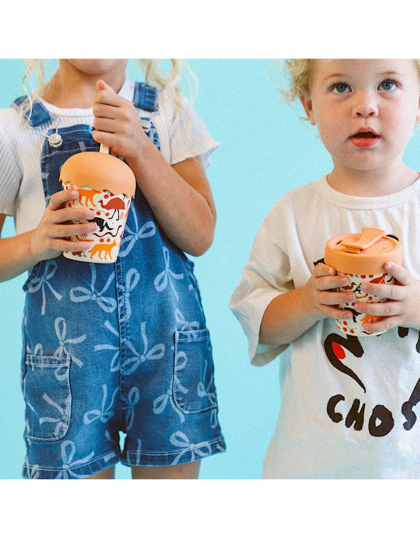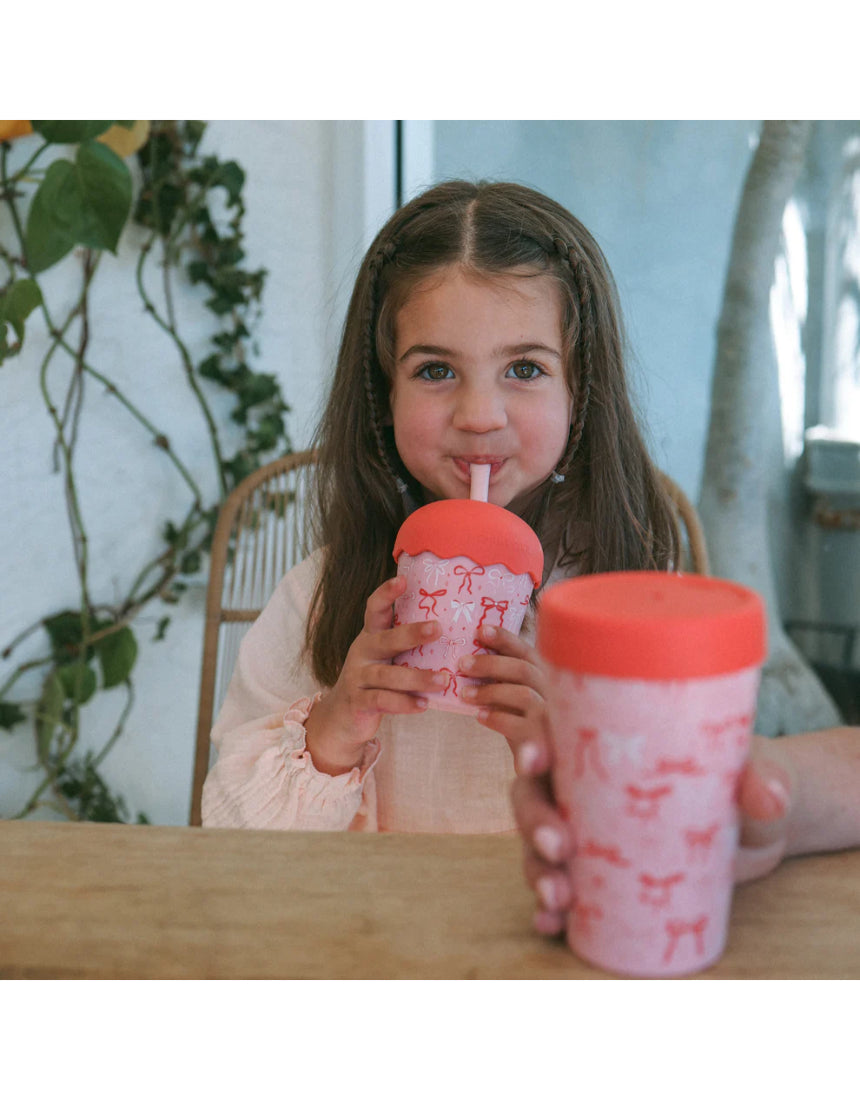 Biodegradable bamboo based cup with a silicone lid and complete in a cute gift box. Straws not included.