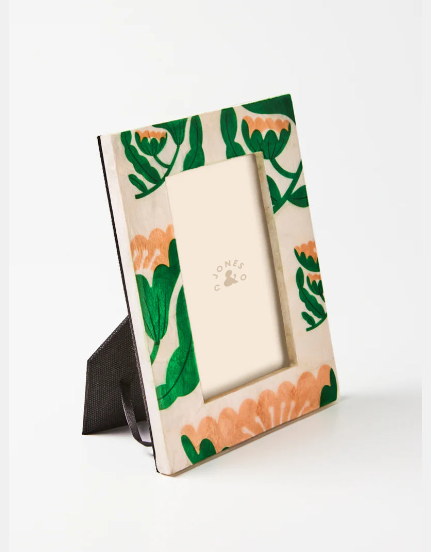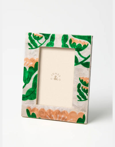Regular price $58.00Graphic illustrated flowers span this Capiz shell frame, transforming your photographs into works of art. Hand-crafted by skilled artisans in the Philippines following our Sydney-designed patterns, each piece celebrates the natural luminosity of the shell while adding poppy florals to the design. The Paradis frame brings playful sophistication to shelves and sideboards in the home.