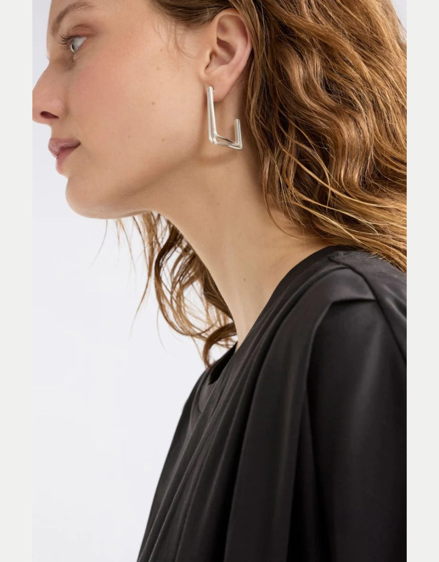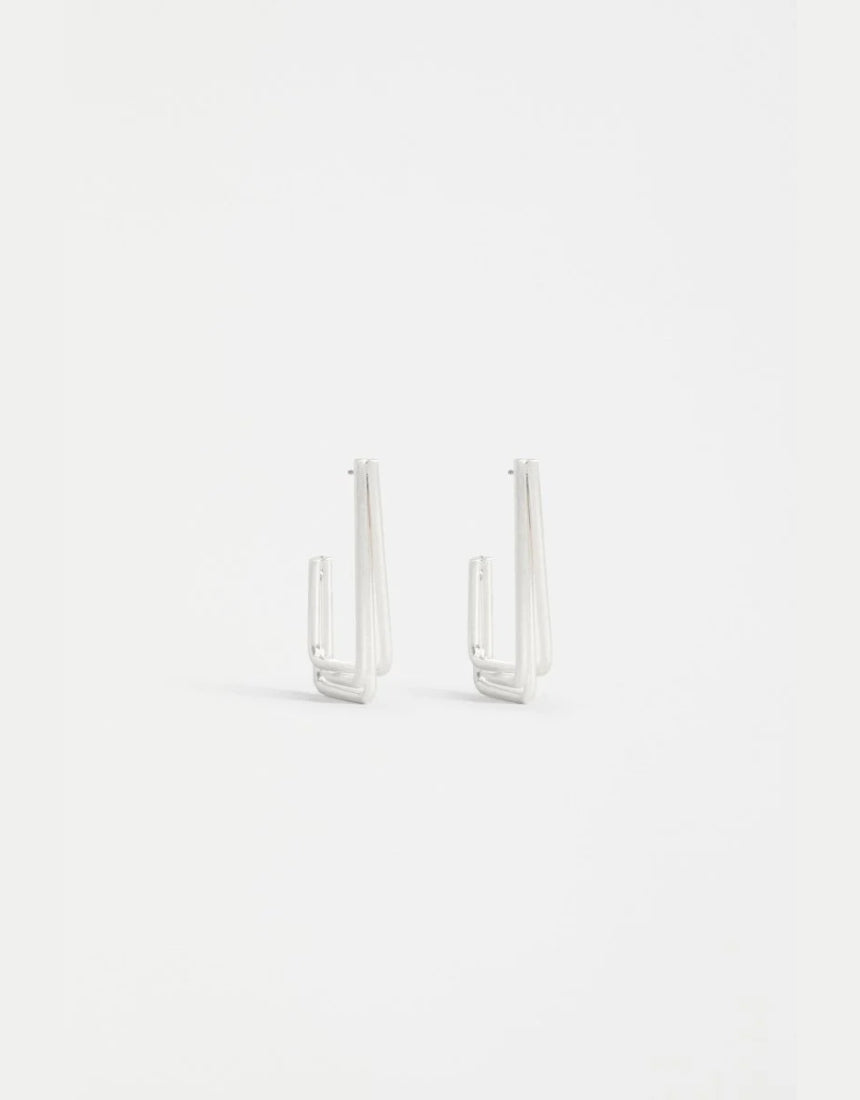 Regular price $49.00The Sokar Earrings are a unique take on our square opened-ended hoops, a sculptural mid-sized design in a brushed metal with a matte finish. The key feature of these earrings is the three-square hoop frames layered together in an organic, wabi-sabi fashion. This lightweight design is perfect for all day wear. These earrings add a subtle unexpected touch to day and evening outfits.