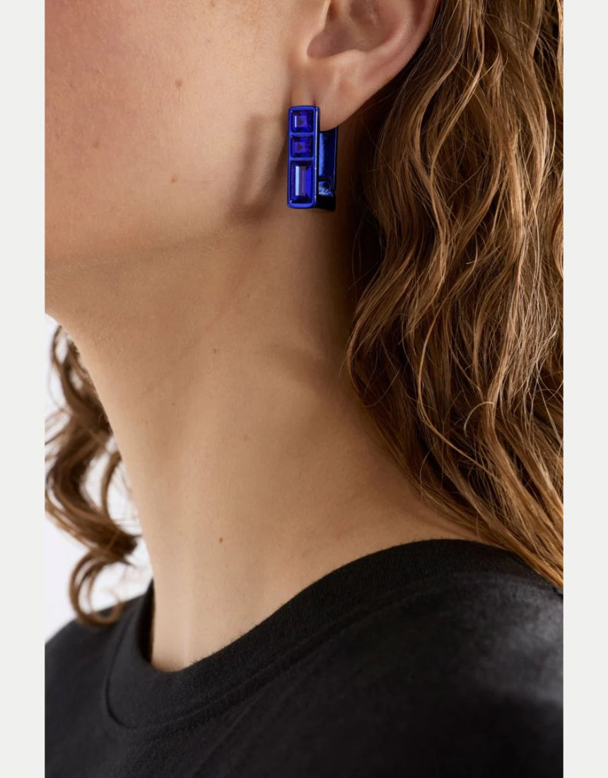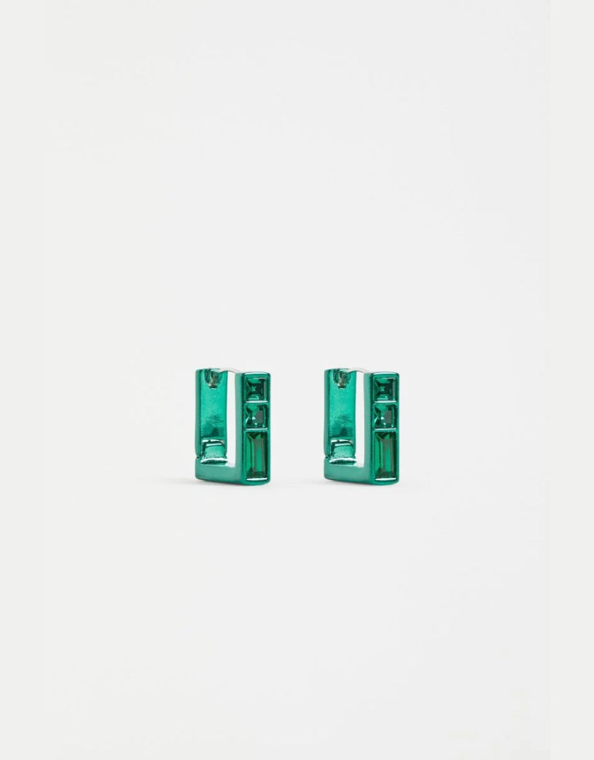 Regular price $59.00The Jilsa Small Hoop Earring is a mid-sized square hoop with a closed hinged backing, featuring a striking glistening square design of glass stones set in a tonal matching anodised base. These unique, vibrant earrings will add a pop of shine and colour to your outfits – a perfect finishing touch to evening looks.