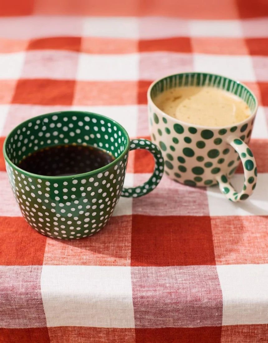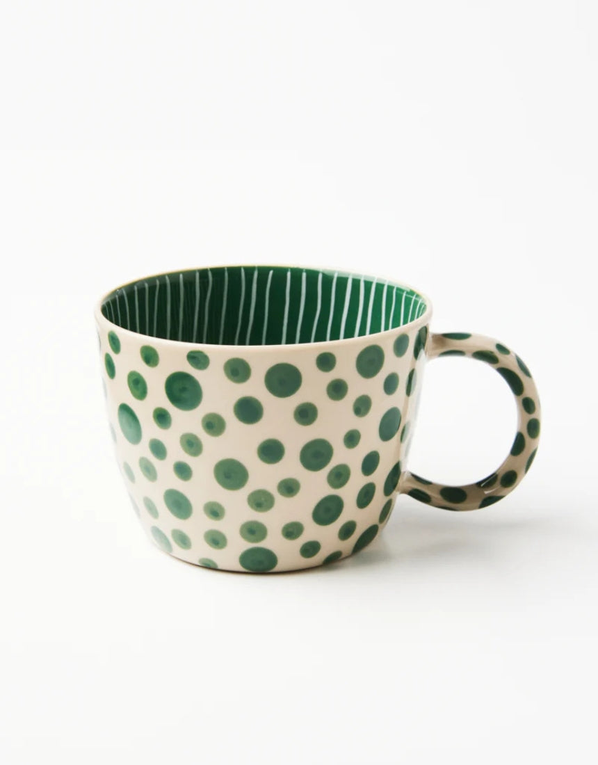 Regular price $34.00Bold green spots command attention on this perfectly proportioned Chino mug, each organic dot applied by hand with deliberate care. Designed in our Sydney studio and crafted by Vietnamese artisans from durable earthenware, its organic form makes it perfect for lazy Sunday coffees or comforting evening tea a tactile companion to daily rituals.