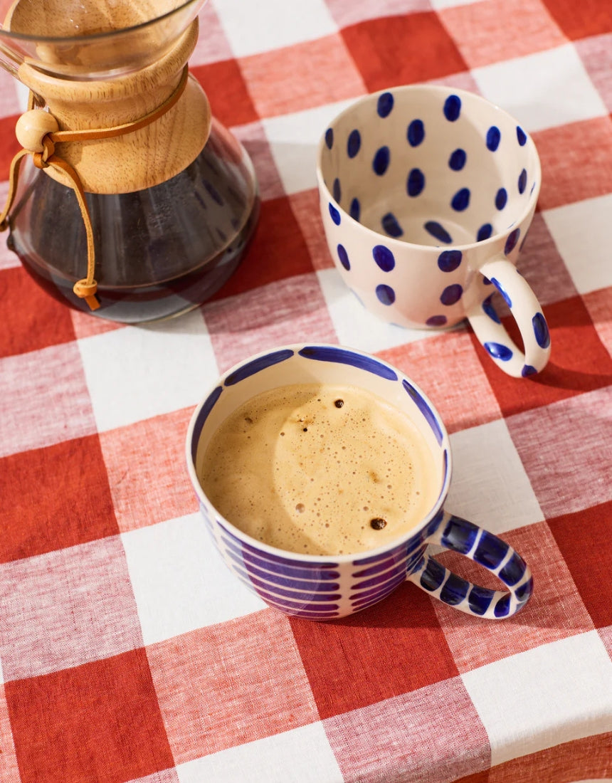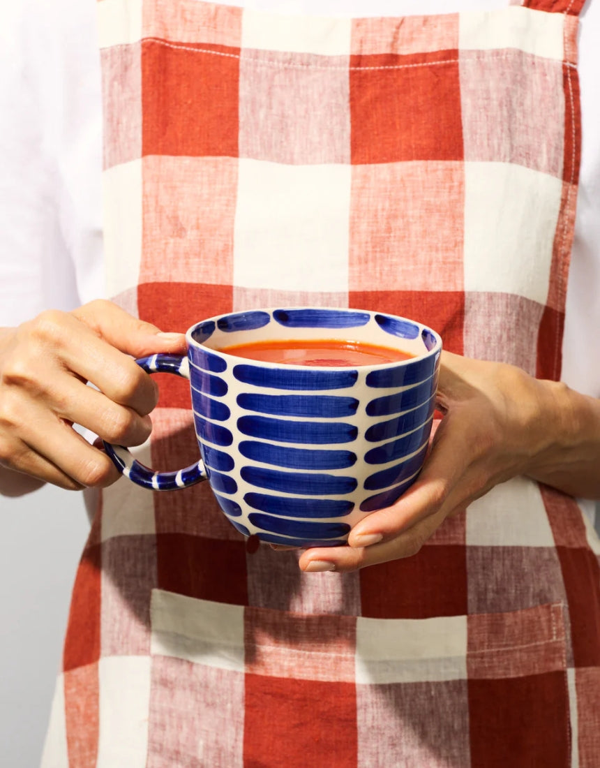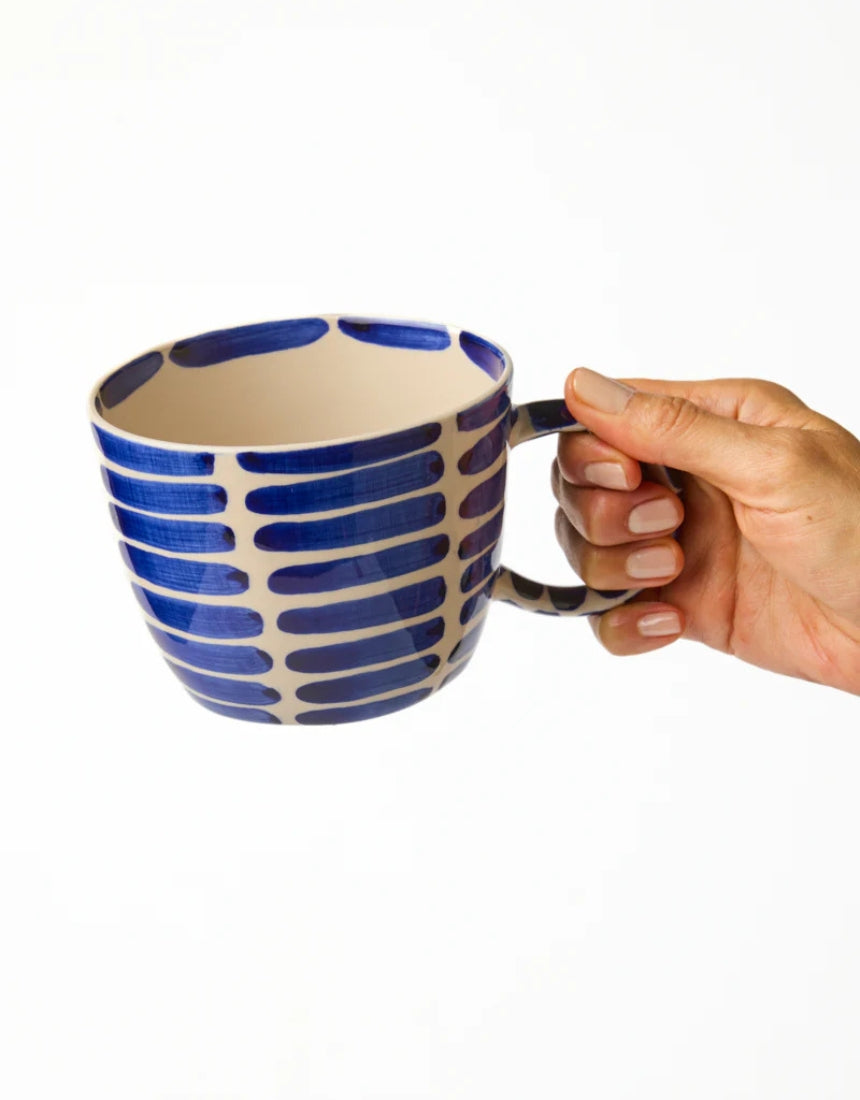 Regular price $49.00Our most substantial mug silhouette meets bold blue stripes in this commanding piece designed for those mornings that demand something more! Conceived in our Sydney studio and hand-finished in Vietnam, this earthenware vessel's generous proportions cradle coffee or soup with equal resolve a testament to thoughtful design and traditional craftsmanship.