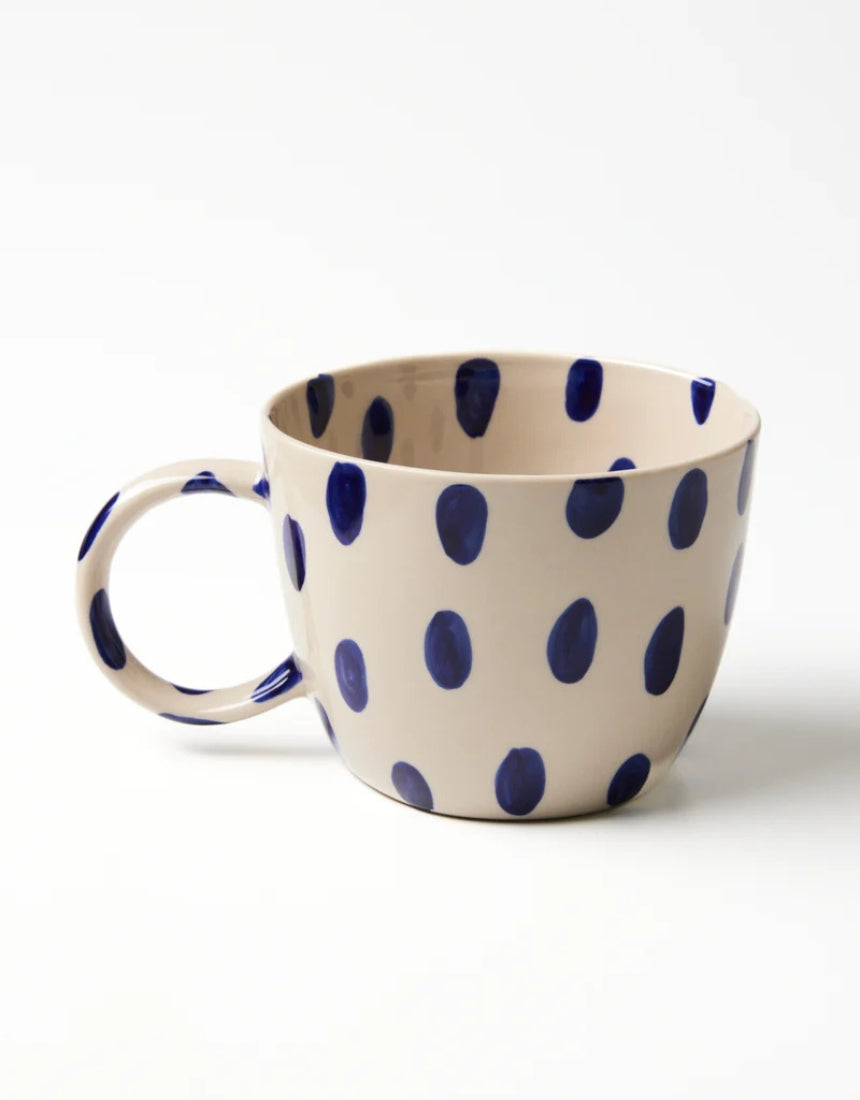 Regular price $49.00Oversized for impact, this mug features hand-painted indigo spots against creamy earthenware a study in contrast and proportion. Designed in Sydney and brought to life by Vietnamese artisans, the Boss Blue Spot transforms your coffee ritual or warming soup with its ample size and playful pattern, each organic dot evidence of the human touch behind every piece.