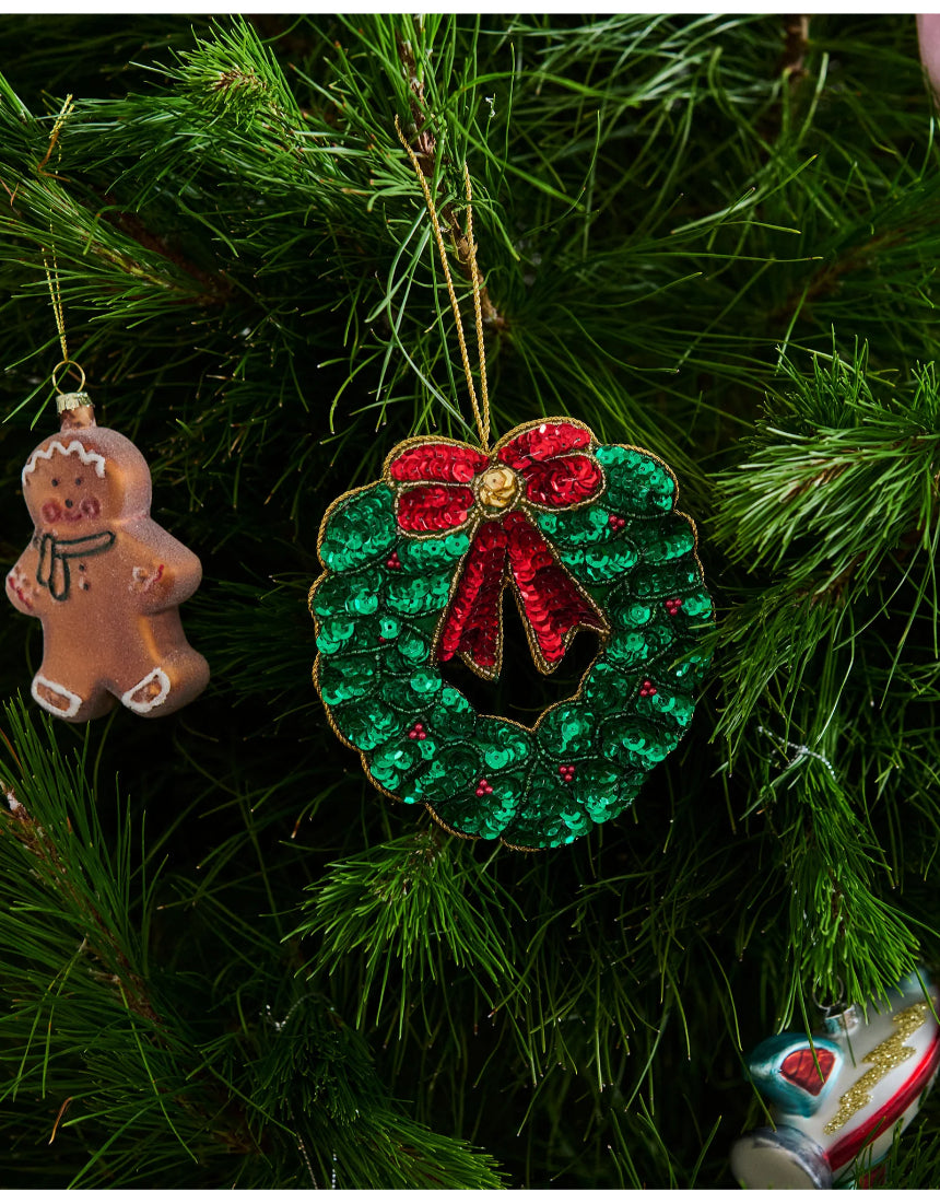 Regular price $22.00Forget cookie-cutter baubles, our handmade Christmas decorations bring personality plus! Each piece is lovingly crafted to add charm, colour, and a sprinkle of joy to your tree. A little quirky, a little festive, and a whole lot of fun, they’re the kind of decorations that get oohs, ahhs, and maybe a cheeky “where did you get that?”. The Wreath Decoration is a traditional style green and red hand sequined and beaded wreath.
