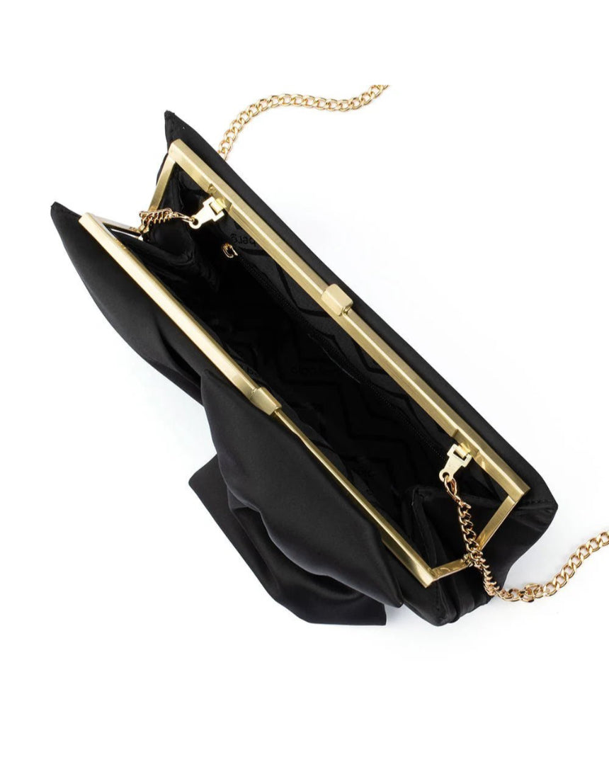 The CHLOE Tie Front Clutch features a chic tie detail that adds a playful touch to its sophisticated design. Perfect for evening outings or lunch with the girls, this clutch combines style and functionality and includes a removable shoulder chain that conveniently tucks inside when not in use.