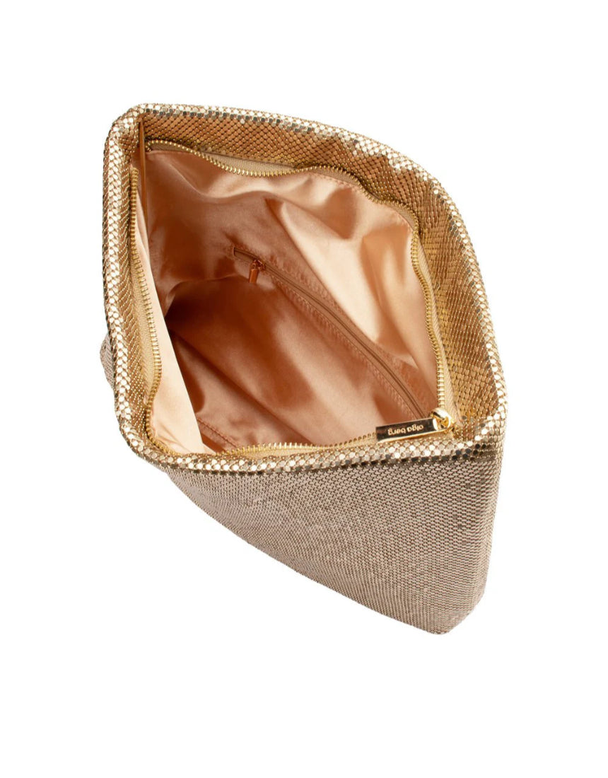 The CLEM Oversized Mesh Clutch features a unique east west, oversized shape and a gorgeous metal mesh finish. This elegant day to evening clutch is the perfect mix of versatility and style with its spacious interior for all your event needs. Dress up or dress down, this clutch is s statement piece.