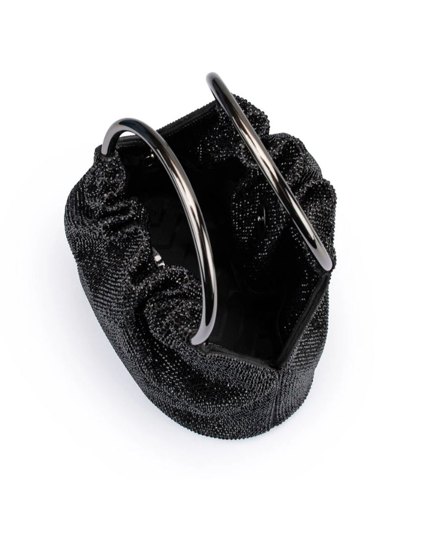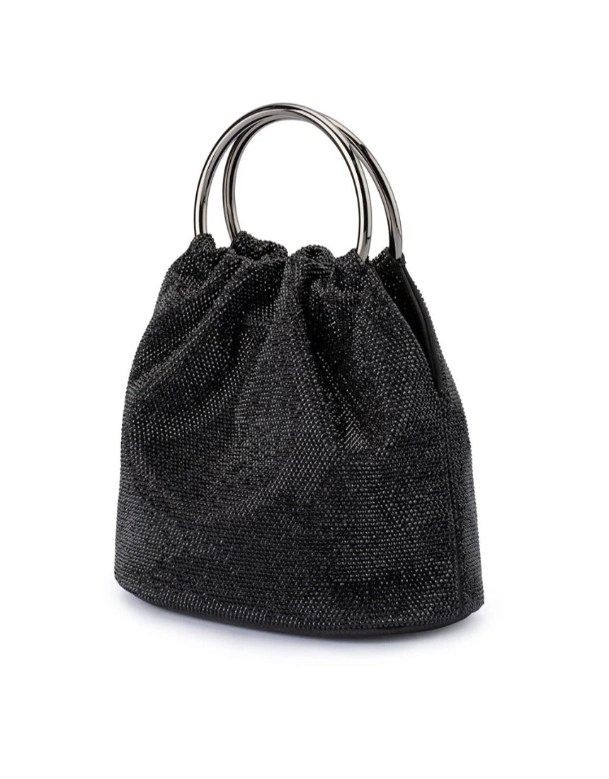 Adding to our best selling collection of ring handle bags, the MABEL Crystal Top Handle bag is roomy enough for a large smartphone, glasses and makeup essentials. Slip the bangles over your wrists or attach the additional shoulder chain for a classy on-the-go look.