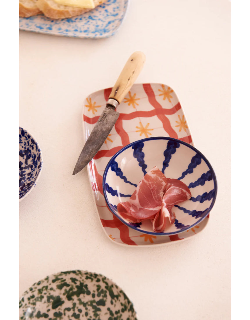 Regular price $14.00Introducing our Pinchos Collection – a versatile series of bowls and trays designed for mixing and matching, just as the name suggests in Italian! From whimsical loosey-goosey faces and squiggles to vibrant Puglian-inspired splatters and tablecloth checks, each piece in this collection adds a playful tone to any space. Use them to serve snacks and treats on the table or as trinket and catchall trays for jewellery and treasures on the bedside or dresser. With Pinchos, the possibilities are endless for creating a fun and eclectic mix-and-match style in your home.